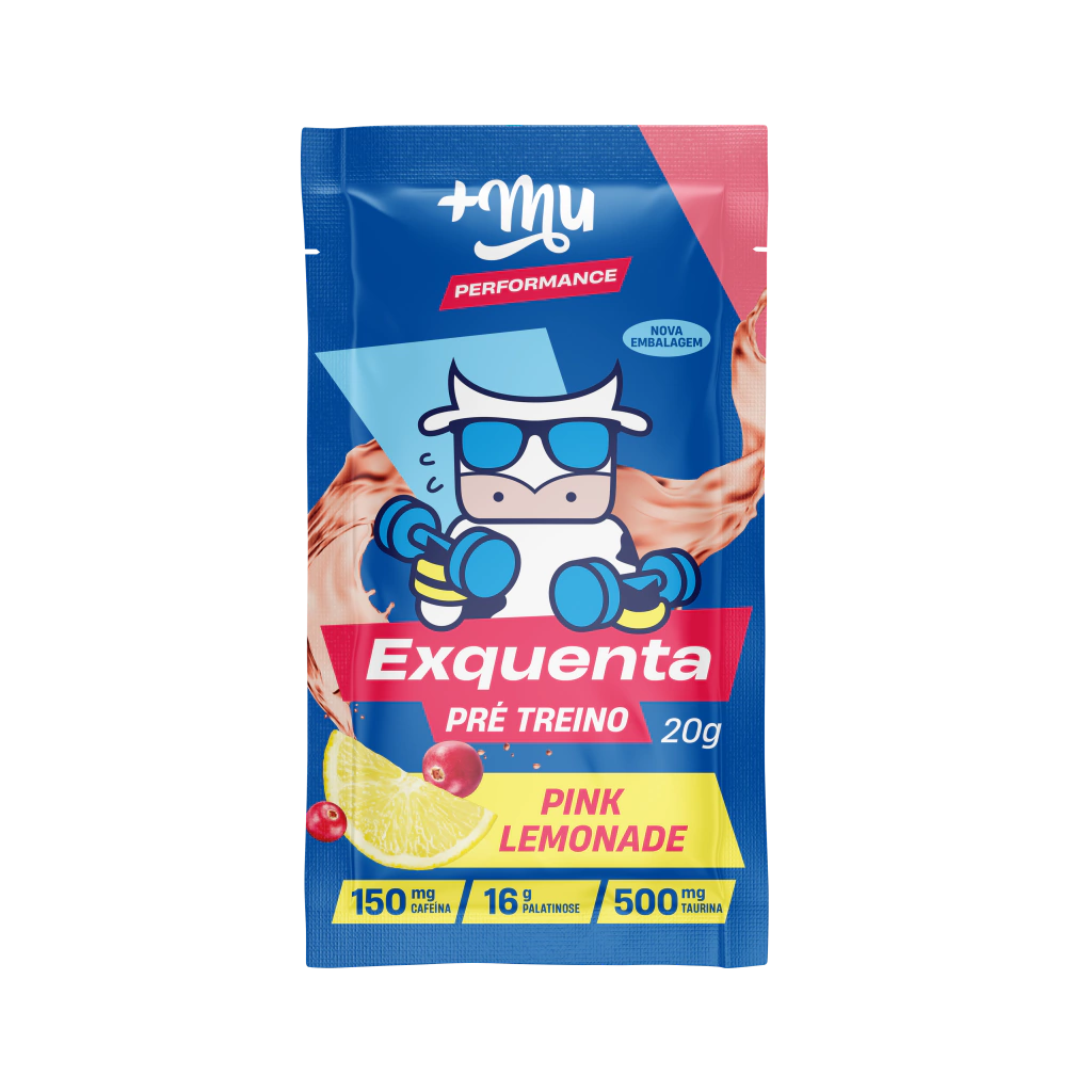 O Exquenta Mais Mu Performance (20g)é um pré-treino em sachê prático, formulado para aumentar a energia e o foco sem causar taquicardia ou formigamento (sem beta-alanina). Contém 150mg de cafeína, taurina, palatinose (energia gradual) e termogênicos (pimenta/gengibre), sendo ideal para treinos de intensidade com sabor refrescante.